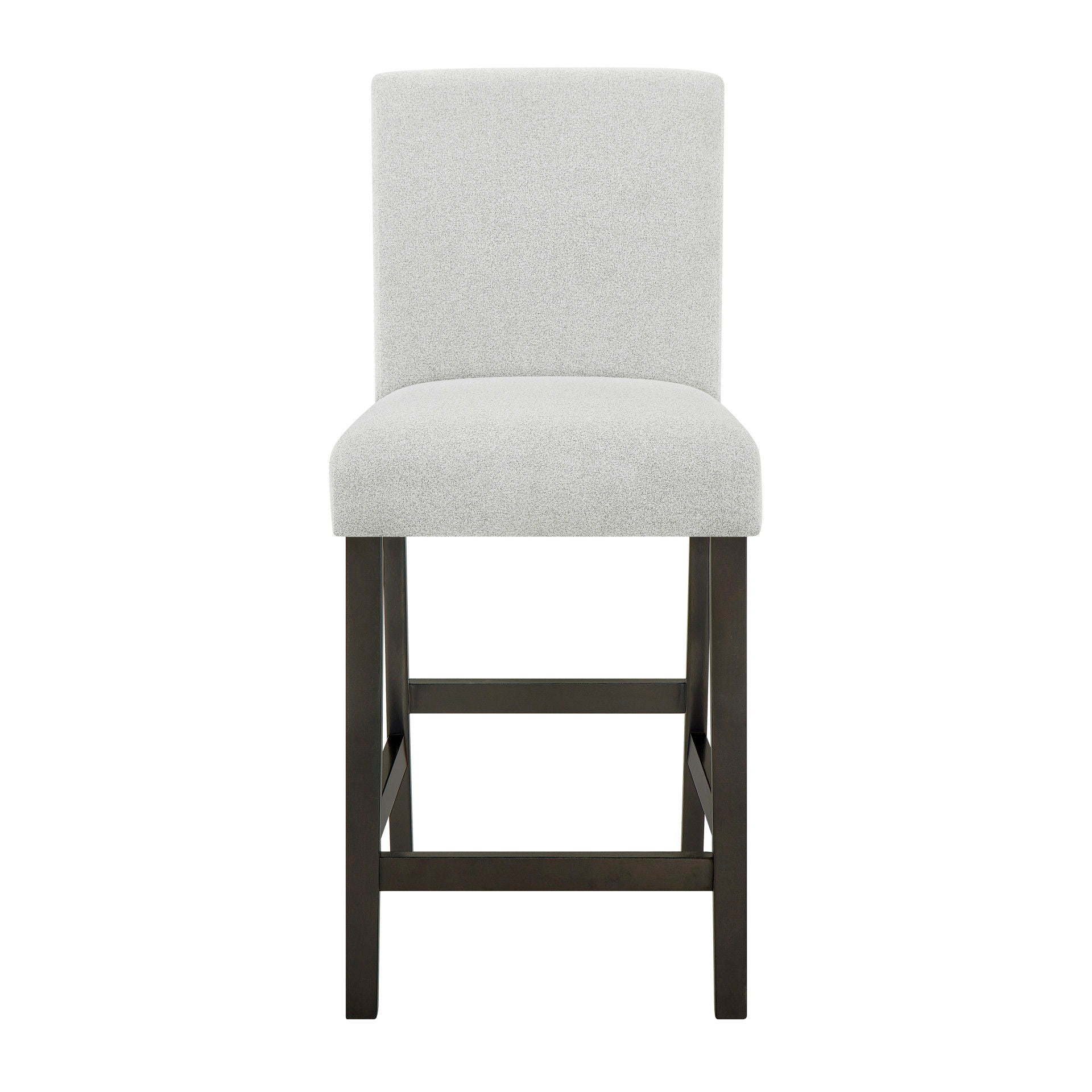 The Carissa Counter Chair in Stone blend durability with modern charm. Crafted with solid Rubberwood legs for lasting strength, each chair features fully upholstered seats and backs in soft, easy-care 100% polyester fabric. Plush memory foam cushions offer supportive comfort, making every meal feel like a treat. Finished with deep espresso legs, these chairs bring contemporary elegance and inviting style to any dining space.
