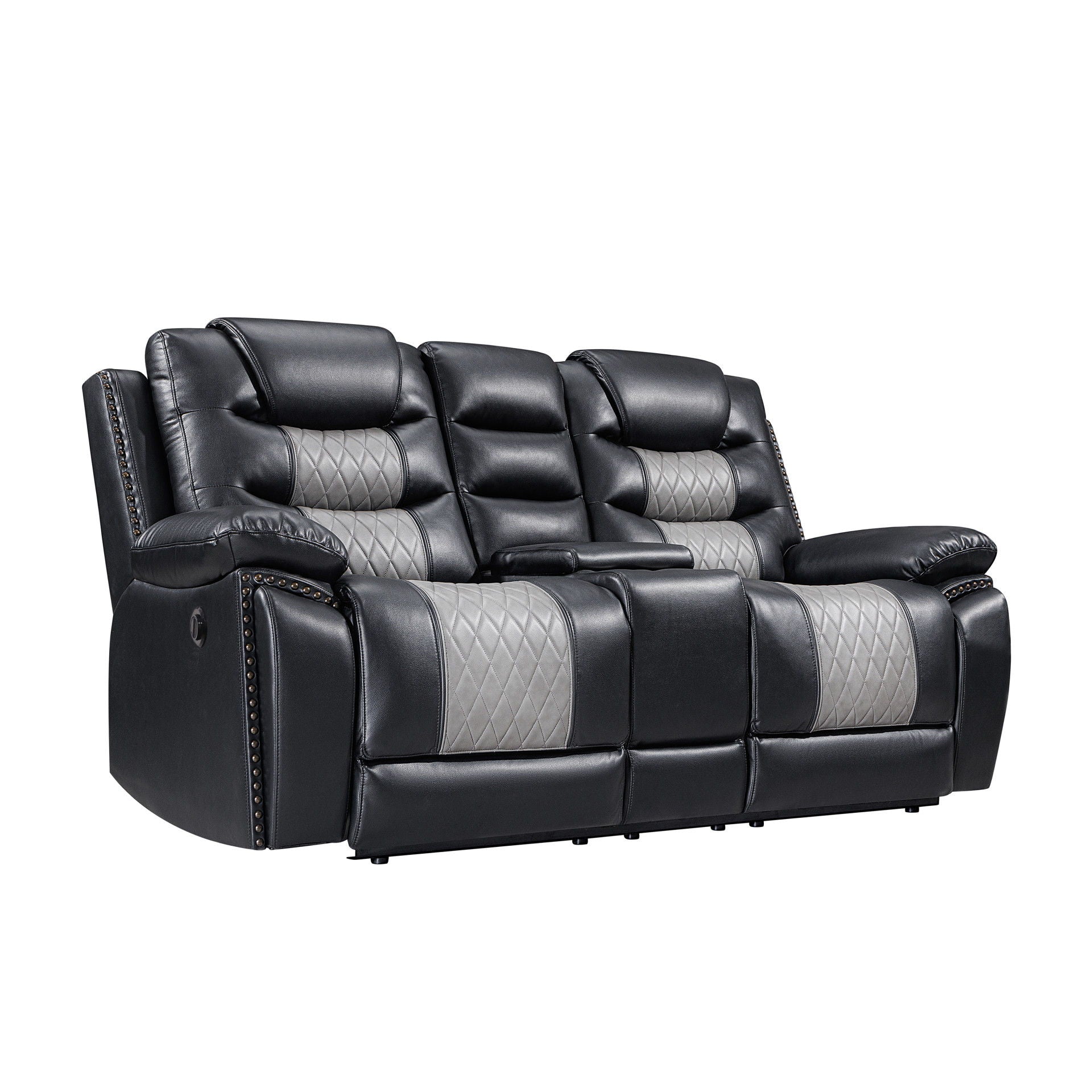 Nikko - Console Loveseat With Dual Recliners - Black / Gray 74.4"W x 38.19"D x 40.55"H - 194.0 lb