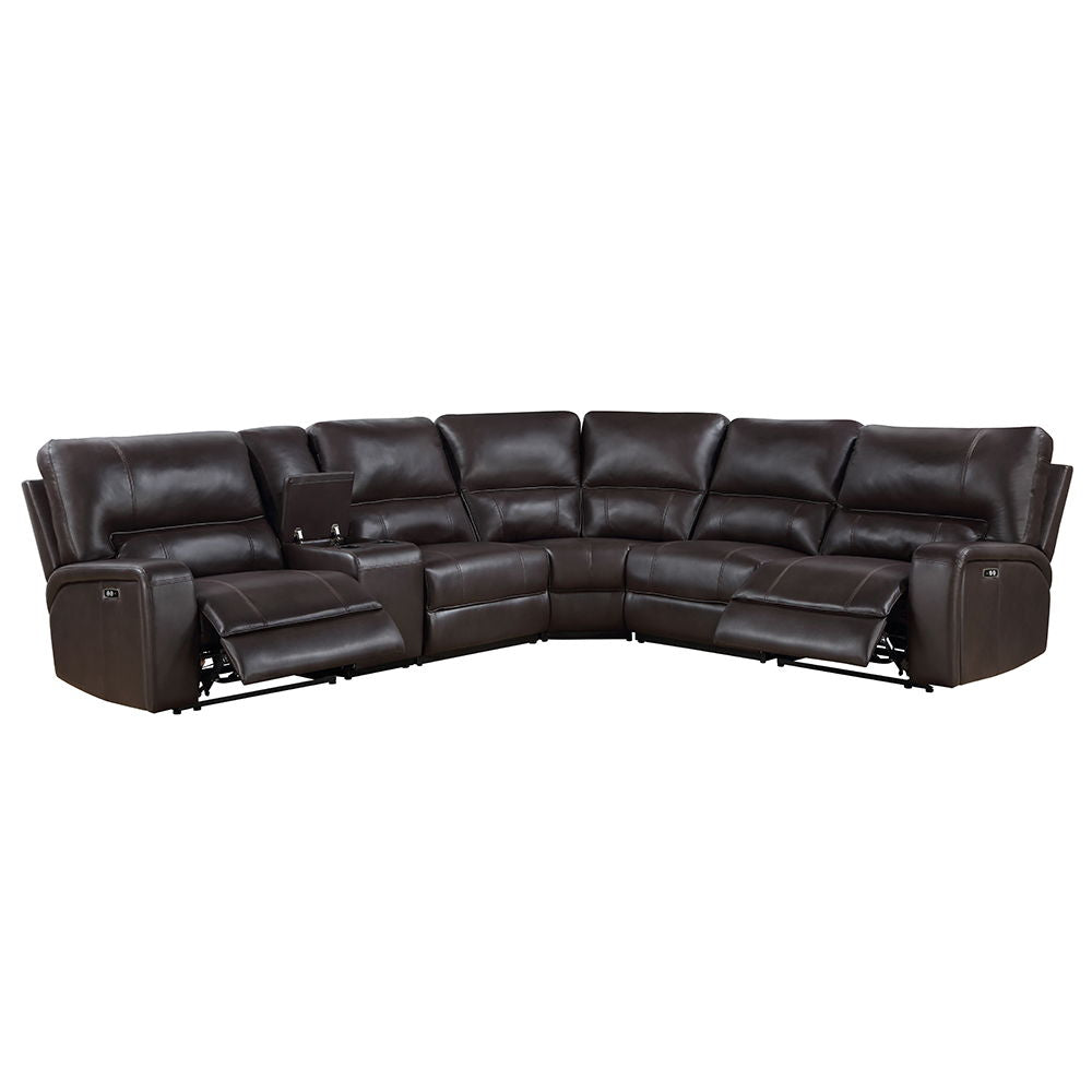Saul - Power Motion Sectional Sofa - Espresso Leather-Aire133.0"W x 117.0"D x 41.0"H - 394.0 lb