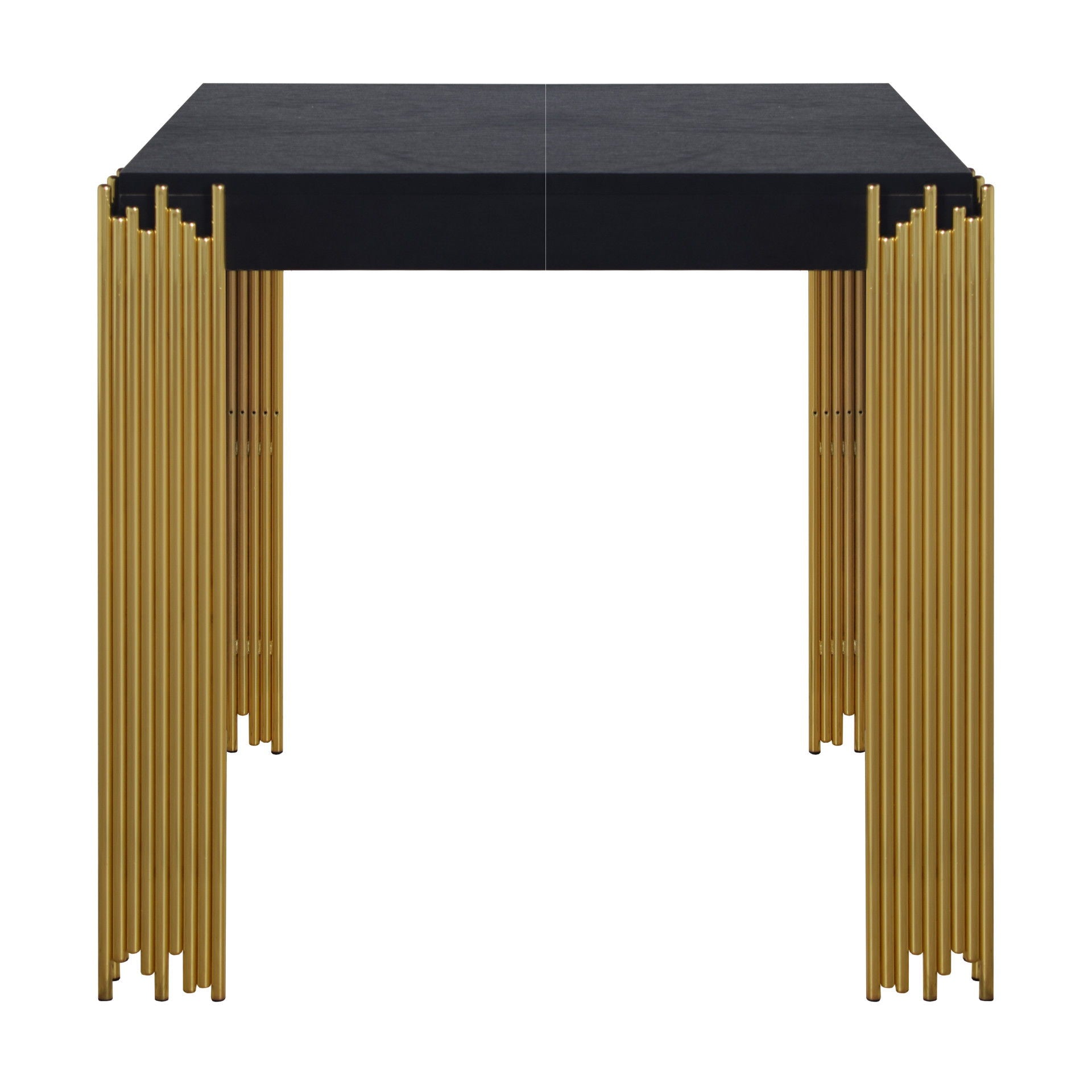 The Empire End Table is a sleek and durable addition to your living space. Crafted with eco-friendly manufactured woods and adorned with a sophisticated black finish, this table exudes contemporary charm while ensuring long-lasting strength and durability. Its modern metro style, characterized by gleaming gold tiered legs, evokes the enchanting ambiance of a city skyline shimmering under the stars. Elevate your space with the Empire End Table, where lasting construction meets stylish design.