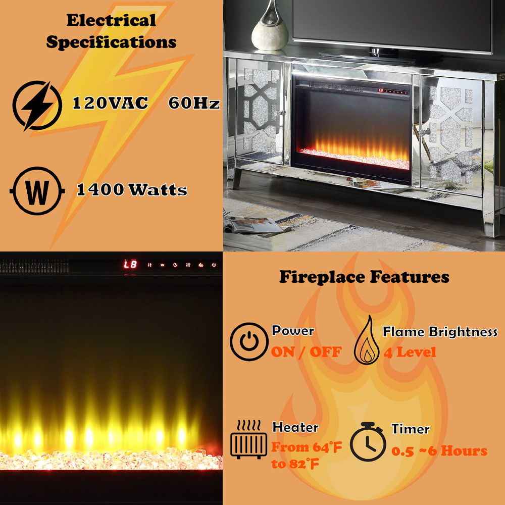 Noralie - 28" TV Stand With Fireplace - Mirrored & Faux Diamonds59.0"W x 16.0"D x 28.0"H - 110.0 lb